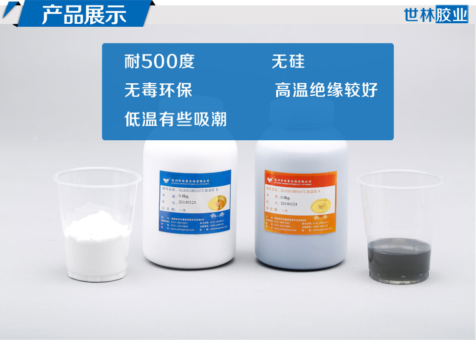 耐高温500度无机硅酸盐胶水具有无毒,阻燃,绝缘,抗老化性能好,收缩率小,但是脆性较大,具有一定的粘接强度和密封作用,抗碱性能方面较差。世林胶业的SL8303耐500的高温胶就属于硅酸盐系列的,在抗酸性能上面比较好。